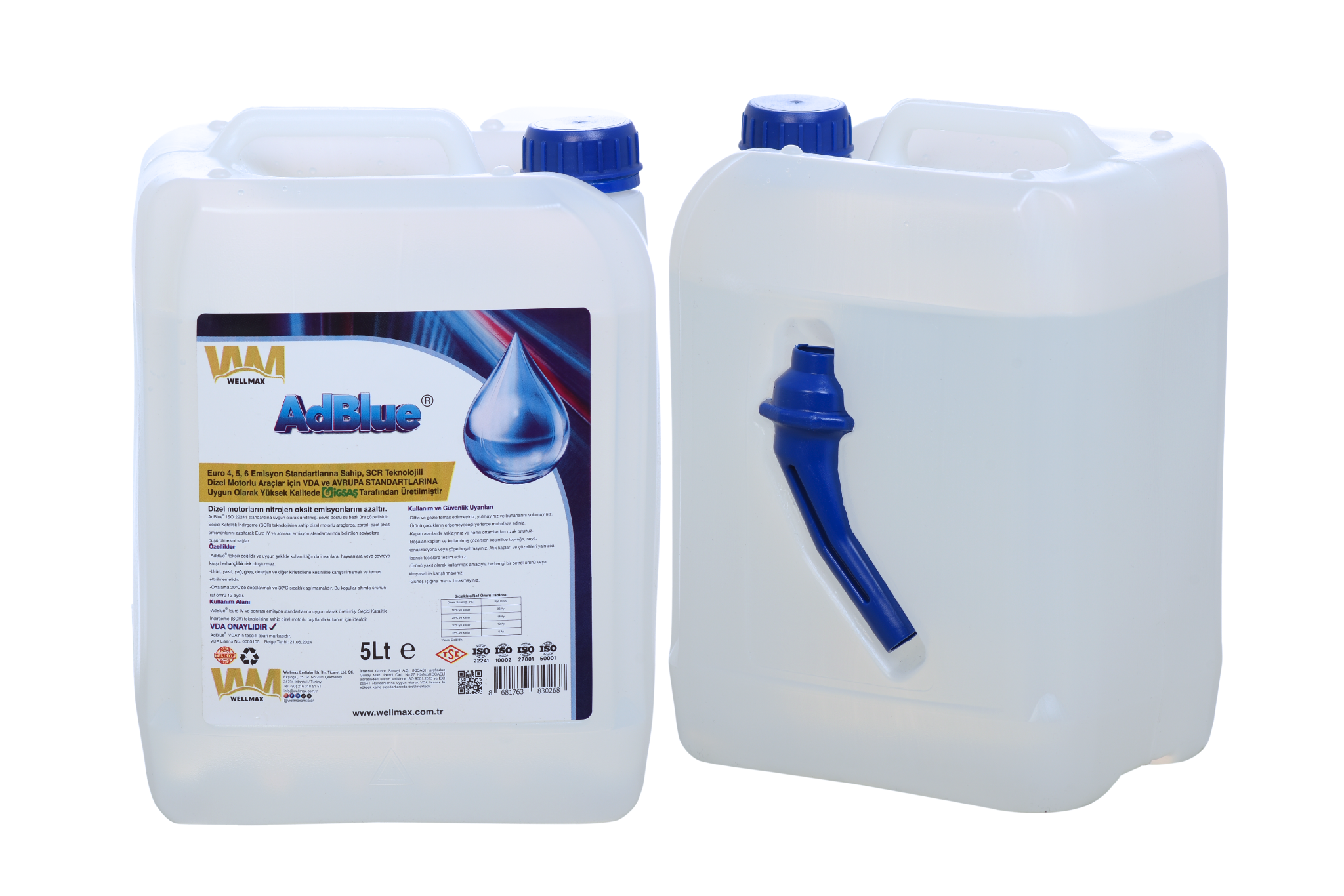 AdBlue® by Wellmax – İGSAŞ Wellblue 5 Lt, Verband der Automobilindustrie e.V. ve ISO 22241 sertifikalı, İGSAŞ güvencesiyle üretilmiş çevre dostu bir üre çözeltisidir. SCR sistemine sahip dizel araçlarda NOx emisyonlarını %67 oranında azaltarak, motor